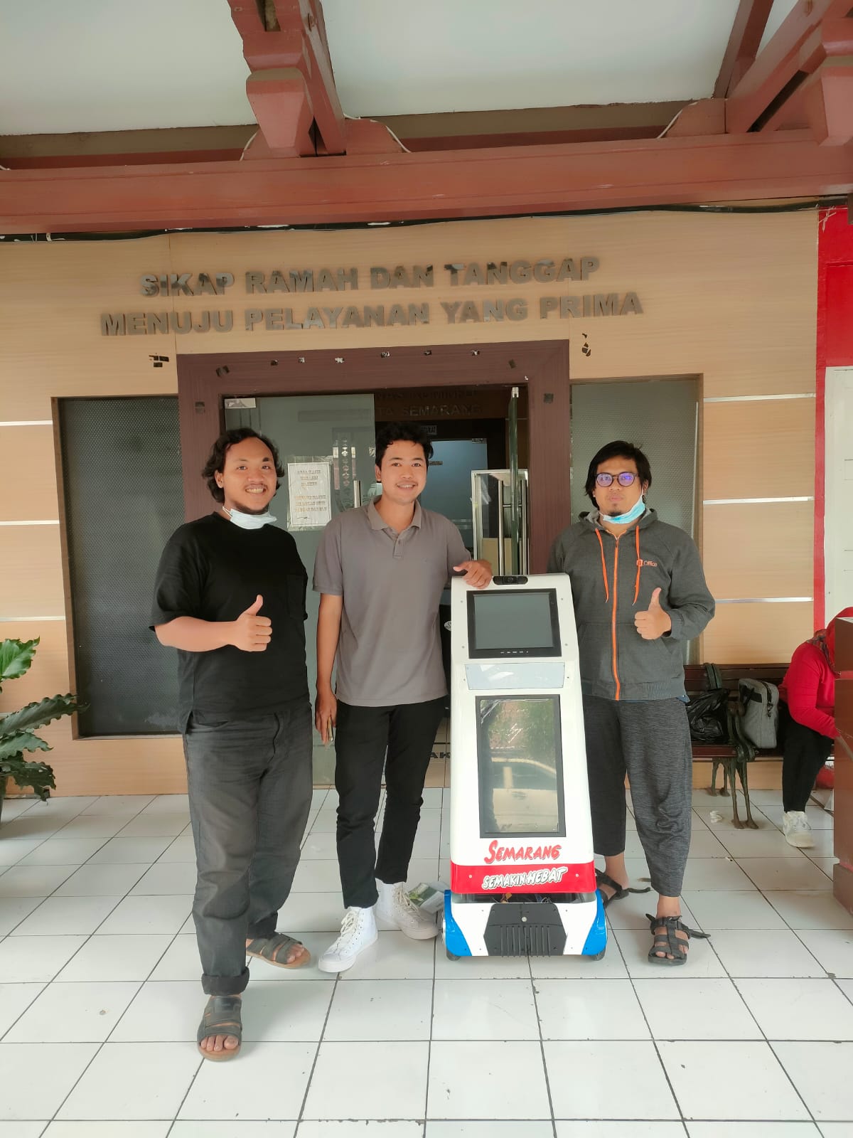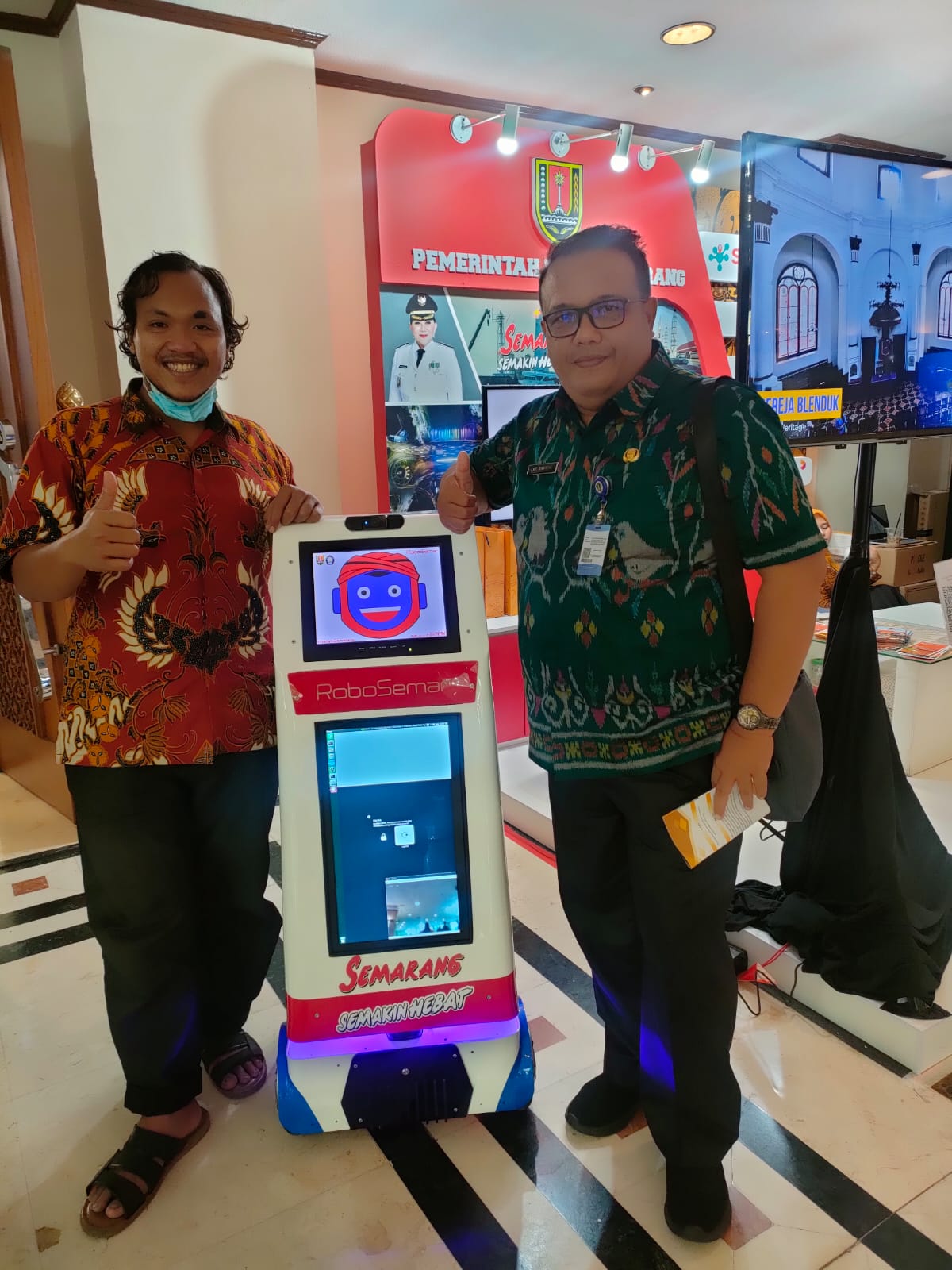 We developed a conversational AI for Robosemar V1 using Dialogflow and deployed it on a Jetson Nano. While Robosemar can interact with users and discuss about Semarang, it sometimes struggles to recognize voice input and responds slowly.